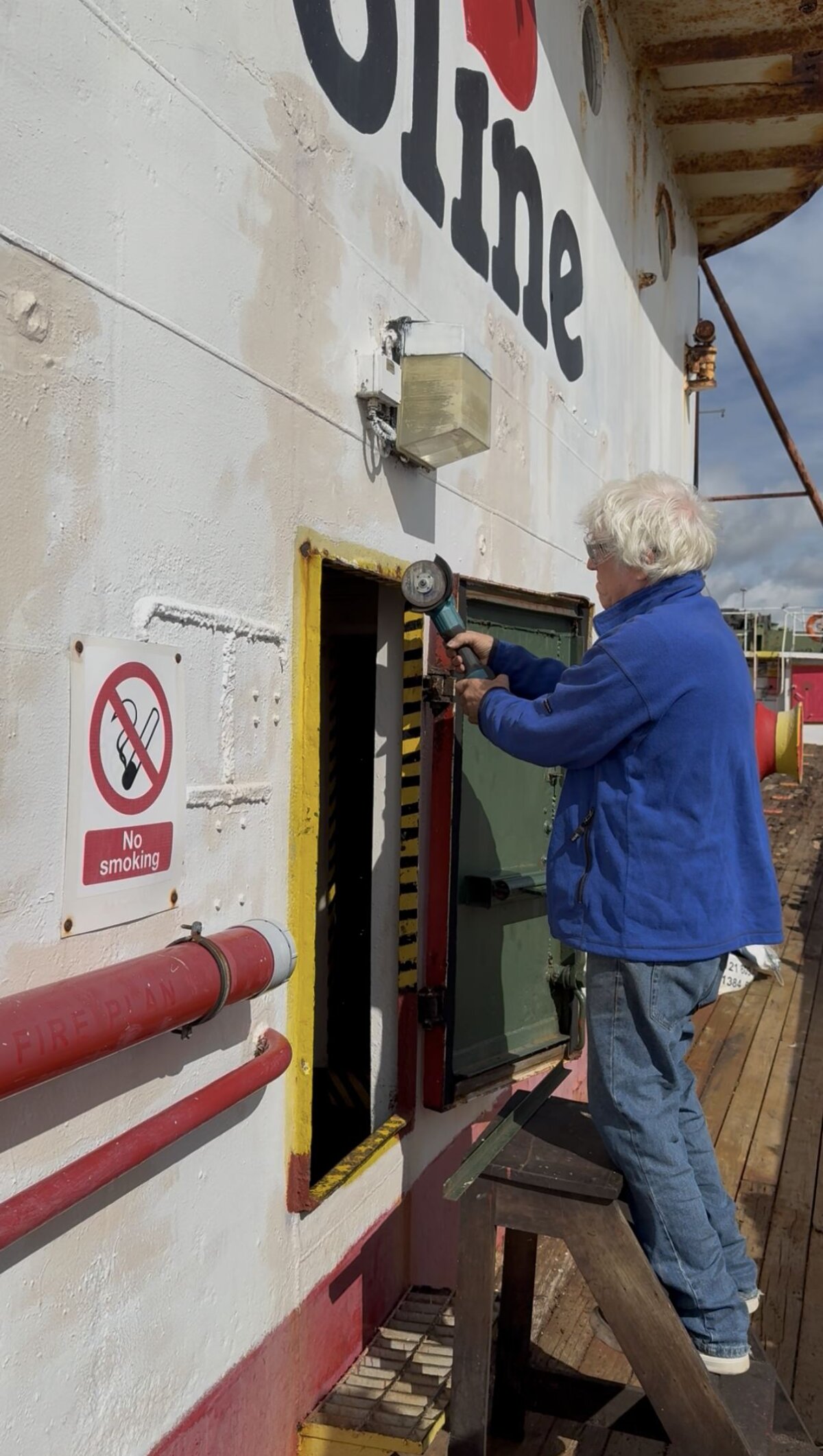 As the fundraising target for restoration of Ross Revenge, the record breaking cod trawler and home to Radio Caroline since 1983, passes £500,000, each month behind the scenes folks called John do work to "batten down the hatches" and making things, to help make the above-deck areas watertight for dry docking. It's now expected that the ship will go to its spiritual home of Grimsby for dry docking in the Autumn.